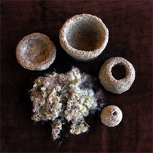 Avec la plante entière, triturée puis broyée, nous avons obtenu un excellent résidu utile pour toutes sortes de pâtes végétales. Enfin, nous avons découvert son potentiel pour faire des petit cônes d'encens ou de la Pâte à Feu, invention du CREAF.