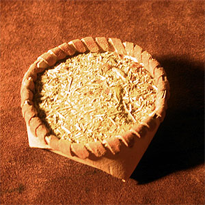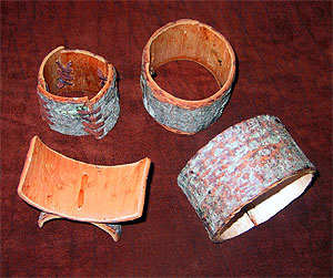 Même à partir de son écorce collante, peu flexible et difficile à retirer de l'arbre, nous avons expérimenté en quantités et formes suffisantes pour produire des petites boites, des colliers et des présentoirs.