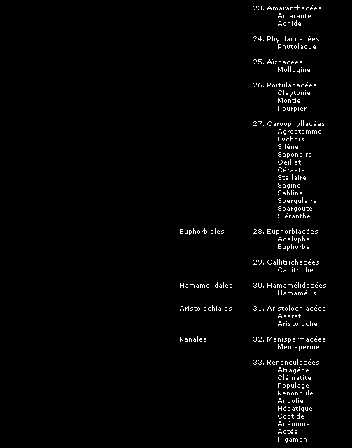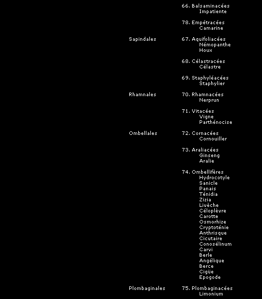 Pour chaque famille de plante, nous avons ajouté la liste des espèces entrant dans chacune des catégories (indiquée en italiques) afin de permettre plus facilement une identification des plantes connues sous leur nom commun.