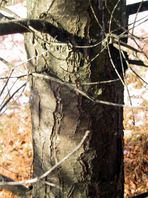 L'écorce du Pin Blanc, moins ligneuse que celle du pin rouge, et beaucoup plus lisse, peut être utilisée de la même façon, cependant avec un peu moins de malléabilité. Elle se défait assez facilement du tronc et il est recommandé de la travailler à frais. Il ne faut cependant pas perdre de vue que cette opération peut aussi lui coûter la vie. Pour cette raison, nous recommandons de ne prélever l'écorce de cet arbre que sur les sujets déjà destinés à la coupe, et cette précaution s'applique, évidemment, à toutes les autres espèces d'arbres... L'odeur de l'écorce rappelle celle de la térébenthine, elle a un goût sucré et amer tout à la fois, et des propriétés astringeantes. Attention, certain sirops très concentrés extraits du Pin Blanc comportent assez de morphine pour créer un risque de dépendance pathologique.