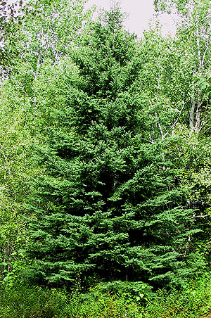 D'une taille allant de moyenne à grande, le Sapin est un bel arbre qui peut atteindre quinze à vingt mètres de hauteur. Sans conteste, c'est un de nos plus beaux arbres, aux frondaisons touffues et soyeuses, et à la cime pyramidale. Ses branches, souples et flexibles, s'étagent de bas en haut de tous côtés d'un tronc droit comme une flèche. Ses cônes, en Amérique du Nord seulement - contrairement aux autres espèces de sapin - sont dressés vers le haut. Ses aiguilles sont applaties et denses mais ne piquent qu'à peine. D'un aspect laqué, et piquées sur deux rangées, elles dégagent, ainsi que son écorce craquelée et robuste, un parfum résineux qui est excellent pour la santé. La particularité de la croissance du sapin est d'être d'abord lente les premières années, puis elle s'accélère jusqu'à la soixantaine pour ralentir jusqu'à cent-cinquante ans. Mais de nos jours, peu d'arbres atteignent encore une telle longévité sans être atteints par l'intervention de l'homme.